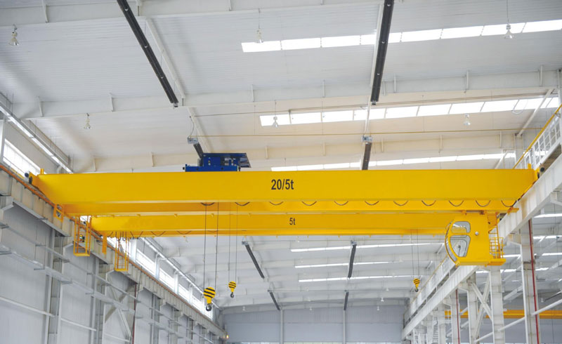 10t双梁桥式行车是现代工业生产和起重运输中实现生产过程机械化、自动化的重要工具和设备。所以10t双梁桥式行车在室内外工矿企业、钢铁化工、铁路交通、港口码头以及物流周转等部门和场所均得到广泛的运用。