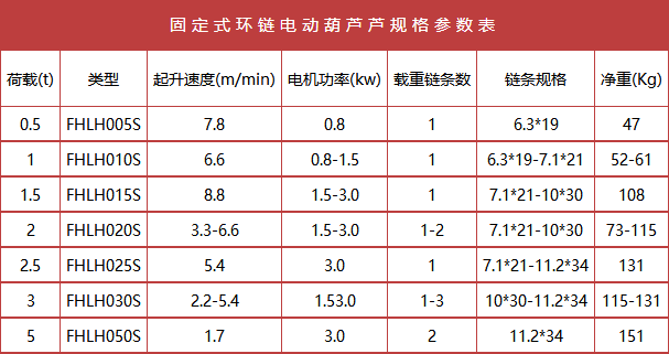 固定式环链电动葫芦的特点: