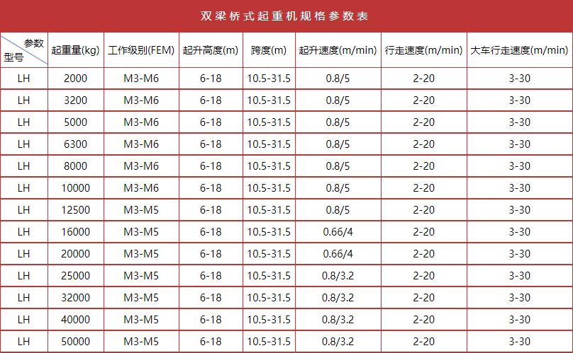 它与欧洲电动葫芦一起使用,并在轨道上运行,成为一台更高的起重机。通常,起重能力为0.5t-50t,跨度为7.5-31.5m,运行速度为4-20m / min和5-30m / min。如有特殊要求,可单独设计制造。