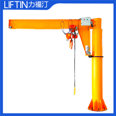 悬臂吊起重机工作强度为轻型,立柱式悬臂吊是悬臂吊起重机中一种,立柱式起重机由立柱,回转臂回转驱动装置及电动葫芦组成,立柱下端通过地脚螺栓固定在混凝土基础上,由摆线针轮减速装置来驱动悬臂回转,电动葫芦在悬臂工字钢上作左右直线运行,并起吊重物。起重机旋臂为空心型钢结构,内置式行走机构,采用带滚动轴承的特种工程塑料走轮,摩擦力小,行走轻快;结构尺寸小,特别有利于提高吊钩行程。